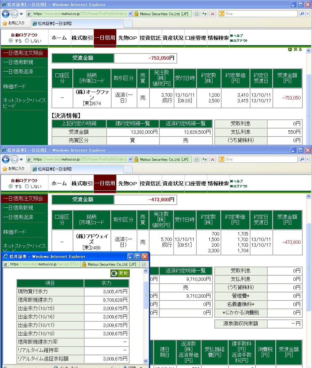 取引したのは2489アドウェイズ、3674オークファン。2ヶ月ぶりの大やられになってしまい、3連休前なのに気分悪い。