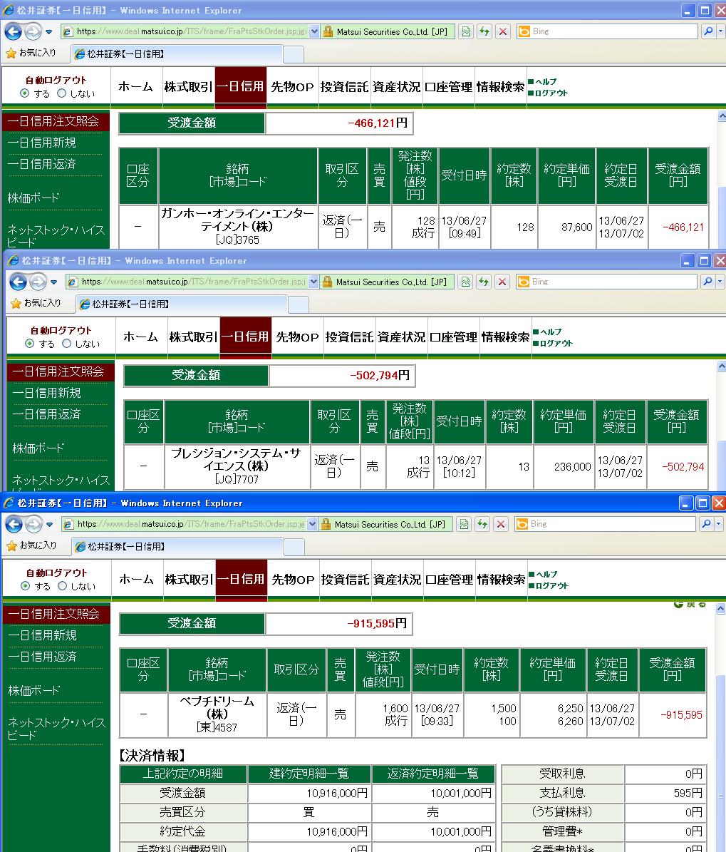 取引したのは4587ペプチドリーム、2370メディネット、3674オークファン、3765ガンホー、3656KLab、2130ジーエヌアイ、4974タカラバイオ、3386コスモバイオ、7707PSS。