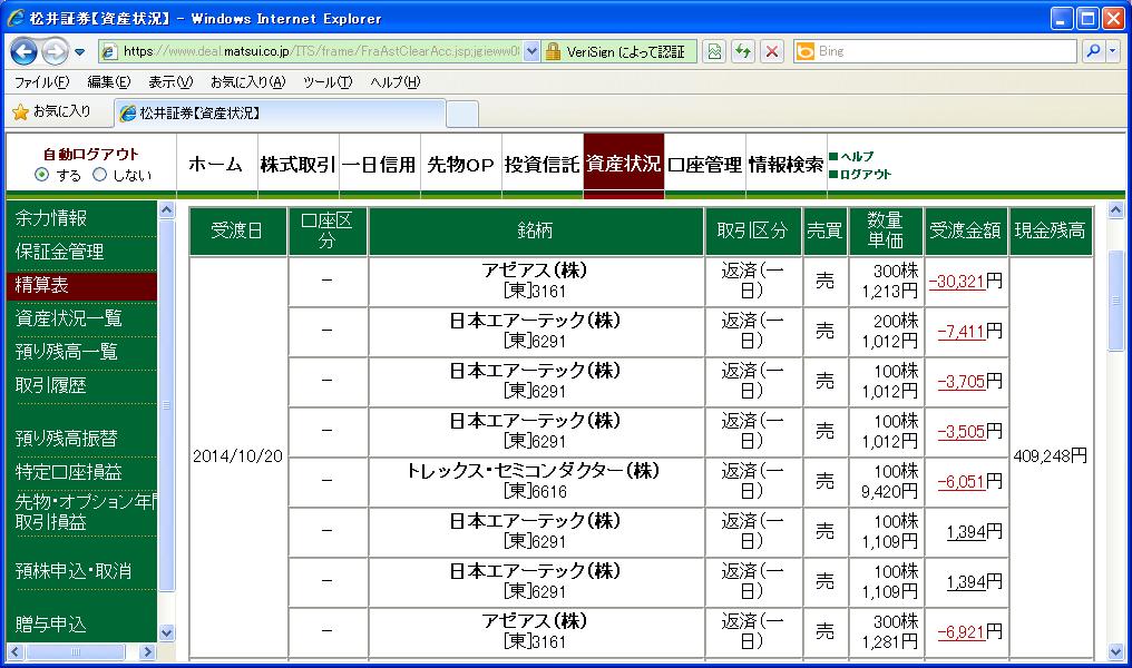 - 大きく2連敗は厳しいですね。下がり続ける相場はないですし、41万から120万にしたわけだから相場が好転して歯車が合えば・・・